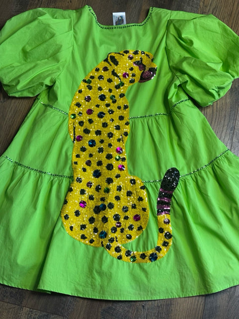 GRN PUFF/SS MINI SEQ LEOPARD/BCK